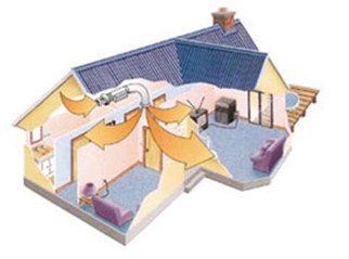 Heat recovery systems take the heat out of the air that is being expelled from your house and use it to warm the new air entering your house.